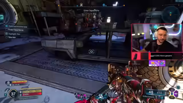 06:14:55Es wird über Alienwaffen diskutiert, aber der Streamer hat keine Ahnung, ob es dazu Neuigkeiten gibt. Der Streamer zockt auf schwer und bedankt sich für neue Follows. Es wird überlegt, ob ein Mitspieler morgen wieder dabei ist. Der Streamer erklärt, dass er Waffen und Legis meistens bei Bossen farmt. Es wird bestätigt, dass der Mitspieler morgen zur selben Uhrzeit wieder dabei ist. Der Streamer findet es gut, wenn man im Spiel auch mal ein bisschen durchläuft und nicht nur durchrast. Es wird über die hohen Kosten für den Tod im Spiel gewitzelt. Der Streamer weiß noch nicht, wofür Iridium im Spiel benutzt wird und will es auch nicht wissen. Der Streamer bedankt sich für einen Follow und hofft, dass es den Zuschauern gut geht. Es wird eine Freigabe-Kammer mit Energie versorgt und nach einer Batterie gesucht. Es wird über die hohe Anzahl an Gegnern gewitzelt. Der Streamer findet das Spiel sehr spaßig. Es wird überlegt, das Schild und die Granate neu zu farmen. Der Streamer findet einen Fahrzeugbausatz, der aber verbuggt zu sein scheint. Es wird festgestellt, dass Gegner wieder spawnen. Der Streamer kommt mit seinem Schaden noch gut aus und müsste eigentlich nichts neu farmen. Der Streamer bedankt sich für neue Follows. Es wird kommentiert, wie die Granate die Gegner umhaut. Der Streamer fragt sich, was ihn gekillt hat und welcher Minion geiler ist. Der Streamer hat von Anfang an aufs Phantom geskillt, weil er es geil fand. Es wird erklärt, dass die Schnitter sich bewegen und für den Spieler Kills machen. Der Streamer wollte etwas Stationäres haben und seinen Stuff nebenbei machen. Es wird darauf hingewiesen, dass man für SDU wieder 40 Punkte bekommen kann. Es wird empfohlen, sich für einen Minion zu entscheiden, um besser skillen zu können. Der Streamer ist im roten Scale Tree drin und erklärt, wie man aus anderen Scale Trees skillen kann. Es wird erklärt, dass man immer nur eine Sache aus einem Tree nehmen kann. Der Streamer erklärt, wie er seinen Skilltree aufgebaut hat und welchen Schaden er dadurch verursacht. Es wird betont, dass man im Spiel viel rumprobieren kann. Der Streamer erklärt, dass er sich zu Borderlands nichts anschaut und alles selber macht. Er schaut, was ihm gefällt und Spaß macht zu spielen. Es wird betont, dass es wichtiger ist, selber Spaß zu haben, als nach Builds von anderen zu spielen. Der Streamer findet es gut, wenn man im Spiel alles aufmachen kann, auch wenn man es vielleicht gar nicht braucht. Er tauscht sich mit dem Chat aus und probiert Sachen aus, wenn der Chat ihm Tipps gibt. Es wird festgestellt, dass das Ödland-HI in dem Spiel sehr geil hinbekommen wurde. Der Streamer findet, dass die Optik gut zu Borderlands passt. Es wird über einen Unterschlupf diskutiert. Der Streamer fragt den Chat, ob das Bild, was er spielt, geil aussieht und ob viel auf dem Bildschirm passiert. Er findet, dass die Kettenreaktionen sehr nice sind. Der Streamer findet, dass er sich für sein erstes Borderlands gar nicht mal so schlecht anstellt. Es wird festgestellt, dass im nächsten Bereich des Spiels sehr viel passiert. Der Streamer findet ein Datenpad.