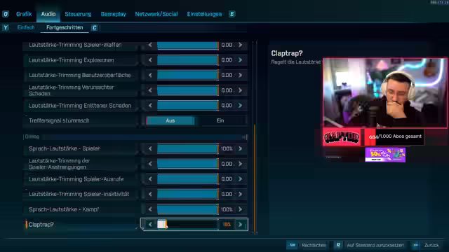 00:54:06Der Streamer interagiert mit Moxxie im Spiel und versucht, durch das Geben von Trinkgeld eine Shotgun zu bekommen, wobei er feststellt, dass die erhaltenen Waffen nicht gut sind. Er lässt viel Geld in dem Laden. Es wird überlegt, ob die 100er oder 1000er Spenden mehr bringen, aber beides scheint zufällig zu sein. Der In-Game-Sound ist zu leise, weshalb der Streamer lauter sprechen soll. Der Streamer probiert eine neue Waffe aus, die Seelenräuber, und versucht, ihre Funktionsweise zu verstehen. Es wird überlegt, ob man lieber In-Game-Geballer oder Gesang hören möchte. Der Streamer hat Probleme mit dem Wegpunkt und wünscht sich eine konstante Anzeige. Er skillt seinen Charakter weiter und wählt mehr Kill-Skill-Stapel, um seine Feuerrate zu erhöhen.