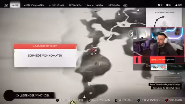 02:09:35Der Streamer drückt seinen Willen aus, die praktische Führerscheinprüfung auf Anhieb zu bestehen, trotz möglicher Rückschläge. Parallel dazu fokussiert er sich auf das Spiel Ghost of Tsushima. Er erkundet die Umgebung, sammelt Ressourcen wie Eisen und Banner, verbessert seine Rüstung auf das maximale Level und deckt weite Teile der Karte auf. Dabei nimmt er mehrere Talismänne und Fuchsbauten auf, was einen erheblichen Fortschritt im Spiel darstellt.