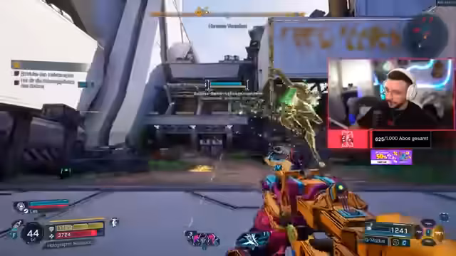 01:51:18Die Jagd nach Raketenbauteilen steht im Mittelpunkt, wobei eine spezielle Waffe und deren Bug einen Teil des Spiels prägen. Das Waffensystem muss durch Fallenlassen und Wiederaufheben repariert werden. Für die koordinierte Aktion ist die Kommunikation essenziell, um Gegner auszuschalten und die benötigten Teile erfolgreich zu finden. Parallel dazu wird eine geplante Kooperation mit einem Streamer namens Rick für den nächsten Tag angekündigt.