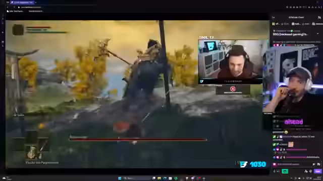 00:38:16Floyd spielt zum ersten Mal Elden Ring und streamt dies 12 Stunden lang. Es wird geplant, eine kurze Watchparty zu veranstalten, um Floyds Anfänge im Spiel zu beobachten und ihn ein wenig zu necken. Der Streamer äußert die Erwartung, dass Floyd am Anfang Schwierigkeiten haben wird. Es wird betont, dass man zuschauen muss, wenn Floyd dem Reiter gegenübersteht und denkt, er müsse ihn besiegen. Der Chat wird aufgefordert, sich an der Watchparty zu beteiligen. Später im Stream wird kurz in Floyds Stream reingeschaut, während dieser das Intro sieht. Der Streamer kommentiert das Intro als bekannt und freut sich darauf, zu sehen, wie Floyd das Spiel erlebt.