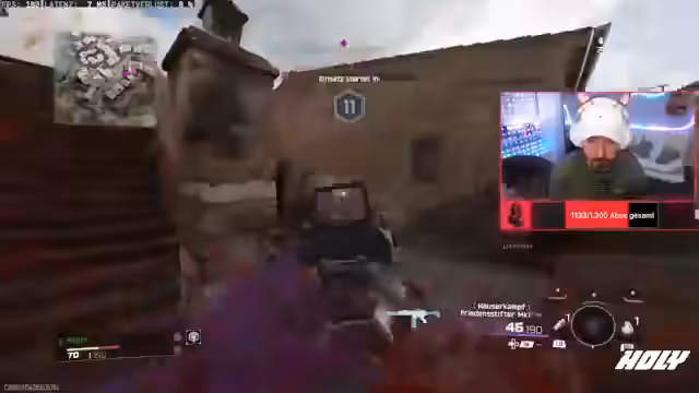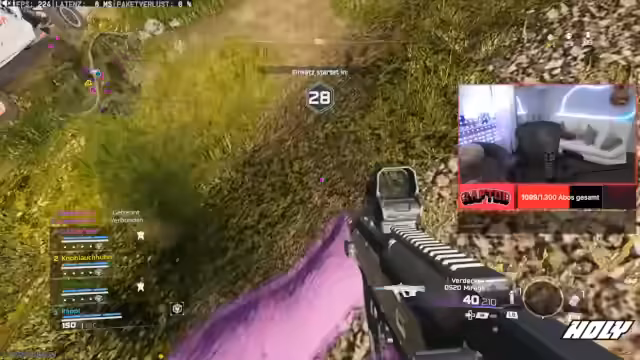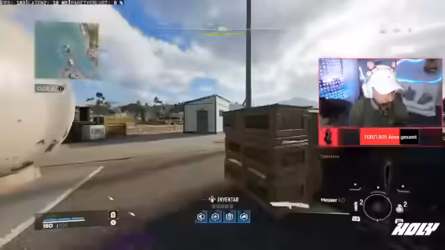03:22:18Die Runde wird intensiver, da gegnerische Teams aktiv werden. Es wird ein Heli gesichtet, was für Aufregung sorgt. Ein Spieler namens 'Rick' ist wieder im Spiel und der Streamer nutzt diese Gelegenheit, ihm einen Streich zu spielen, indem er ihn als 'Hurensohn' und 'Fotze' bezeichnet. Er selbst erleidet einen 'Knock', ist also außer Gefecht gesetzt, und sein Team scheint überfordert. Trotz der Niederlage findet der Streamer eine positive Note, indem er den Versuch einer Hotdrop-Taktik lobt.