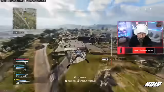 00:50:00Während einer Runde äußert der Streamer Misstrauen gegenüber einem Gegner, den er beschuldigt, durch eine Wand gecheatet zu haben, da er ihn ohne Sichtkontakt exakt getroffen habe. Er bezeichnet dies als 'Sass'. Das Spiel wird fortgesetzt, wobei das Fokus auf dem Sammeln von Loot und dem Erreichen sicherer Zonen liegt. Mit Hilfe des Grapple-Hakens werden strategische Vorteile gesucht. Der Streamer zeigt sich jedoch unzufrieden mit seinem unlevelten LMG, was seine Prioritäten für das Spiel beeinflusst.