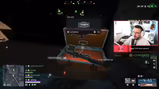 02:12:10Nach einigen technischen Diskussionen kündigt der Streamer eine Premiere an: der erste DSK (SpawnKill) in Redsack. Nach anfänglicher Unsicherheit über die Landung starten sie und nehmen das Spiel mit Thermalvisieren und Waffenaufwertungen ernst. Es gibt erste Kritikpunkte an der Sichtbarkeit im Spiel und der Performance von Drohne und Radar.