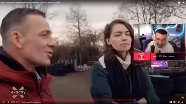 02:41:18Ein Magdeburger Fahrlehrer versucht mit einem eigenen Verkehrsübungsplatz Abhilfe zu schaffen und Kosten zu senken. Dort übt Fahrschülerin Emma seitliches Einparken. Christian Marquardt, der Betreiber des Verkehrsübungsplatzes, kennt die finanziellen Sorgen der Fahrschüler. Er sagt, dass die Autos teurer geworden sind und die Fahrschüler die Assistenzsysteme haben wollen. Der Streamer findet das unnötig und sagt, dass er Assistenzsysteme nicht braucht. Er findet den Abstands-Erkennungs-Pieper und eine Rückfahrkamera sinnvoll, aber Spurhalteassistenten nerven. Es wird diskutiert, ob ein Fernlichtassistent unverzichtbar ist. Wer vorab auf dem Verkehrsübungsplatz übt, braucht insgesamt weniger Fahrstunden in der Fahrschule. Anthony, ein Ingenieurstudent aus Indien, gewöhnt sich auf dem Verkehrsübungsplatz an den Rechtsverkehr. Er findet die deutschen Führerscheinpreise sehr teuer. Christina, die Erzieherin, hat zum Hauptjob eingeladen. Sie betreut Kinder und bringt eines zum Arzttermin. Sie kann nicht Autofahren, was selbst bei den Kindern für Gesprächsstoff sorgt. Sie plant jeden Zwischenschritt minutiös, da sie auf Bus und Bahn angewiesen ist.
