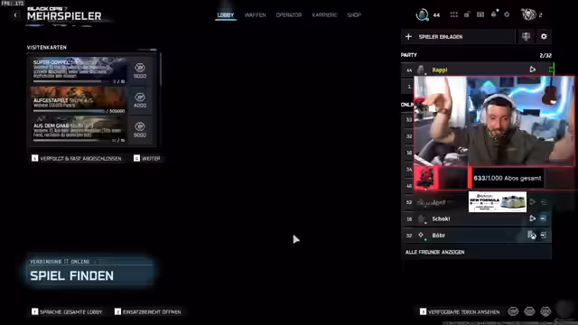 00:09:22Der Streamer Scrappy begrüßt die Zuschauer und teilt seine ersten Eindrücke vom Spiel mit. Er erwähnt, dass sein Stream Deck Probleme mit OBS hat, was ärgerlich ist, da er es momentan nicht nutzen kann. Er hat gerade sieben Stunden geschlafen, was sich deutlich besser anfühlt als die viereinhalb Stunden davor. Er testet einen neuen Level-Up-Geschmack aus seinem Shaker, der ihm sehr gut schmeckt und ihn an Fruchtjoghurt erinnert. Am Montag sollen vier neue Level-Up-Geschmäcker erscheinen. Er diskutiert die Kaufempfehlung für BO7 und betont, dass jeder für sich selbst entscheiden muss, ob sich der Kauf lohnt. Er bemerkt, dass seine Finger vom Controller-Spielen schmerzen und wechselt zu einem neuen Paket, dem Call of Duty Endowment-Paket, das einen Drawek-Skin enthält. Er beginnt, sich mit den Herausforderungen für die Tarnungen zu beschäftigen, darunter 50 Eliminierungen mit Schalldämpfer und 15 Eliminierungen kurz nach dem Rutschen oder Hechtsprung.