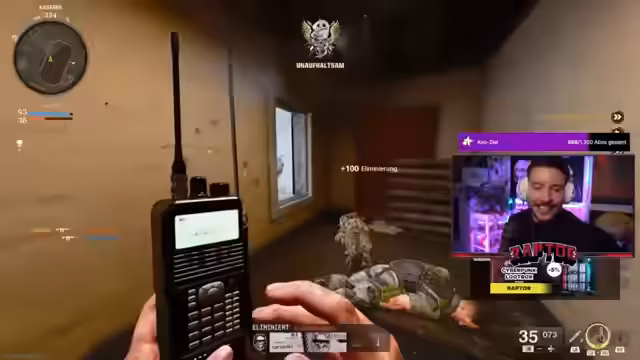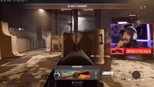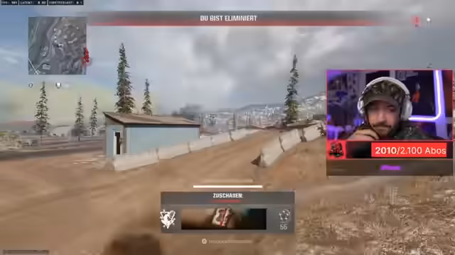 01:41:32Die Beobachtung eines Spielers, der einen Gegner überraschend schnell ausschaltet, ohne selbst viel Schaden zu nehmen. Der Einsatz der Kahl wird humorvoll kommentiert. Die Warnung ausgesprochen, ein bestimmtes Fenster nicht mehr zu „challengen“, um nicht unnötig Risiko einzugehen. Der Spieler wird für seine Entscheidung, einen Raketenwerfer einzusetzen, kritisiert, obwohl er noch eine Chance mit der Kilo gehabt hätte. Der Gewinn des Gulags wird dem „Rennsessel“ zugeschrieben. Die Vermutung geäußert, dass der Spieler eine HDR oder AMAX als Zweitwaffe wählt. Der Spieler hört einen Gegner und wird beschossen. Der gescheiterte Versuch, einen Auftrag zu erfüllen, wird thematisiert. Der Spieler kauft sich eine Drohne und markiert einen bestimmten Spot auf der Karte. Die Notwendigkeit der Meta-Anzeige auf dem Visier bei der HDR wird betont. Der Spieler erreicht den gewünschten Spot in den Bergen und es werden Wetten auf einen möglichen Sieg abgeschlossen.