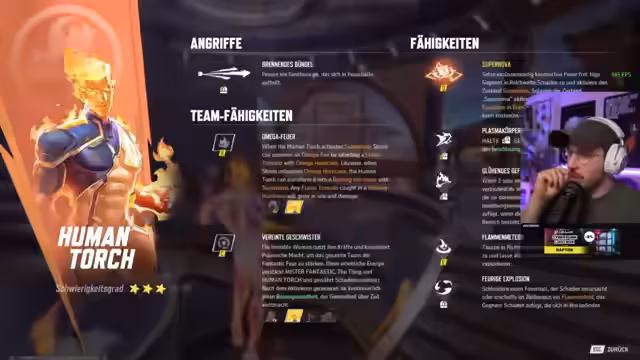 04:57:14Es werden Geburtstagsgrüße an Luis ausgerichtet, inklusive Glückwünsche von Iron Man, Captain Marvel, Captain America, Batman und Spider-Man. Drops für den Stream werden aktiviert. Der Streamer äußert den Wunsch, Marvel Rivals spielen zu können. Nach anfänglichen Schwierigkeiten mit dem Spielstart werden die neuen spielbaren Charaktere in Marvel Rivals, Human Torch und Thing, im Übungsmodus getestet. Der Streamer analysiert die Fähigkeiten von Human Torch, einschließlich seiner Fluggeschwindigkeit und Angriffe. Es wird die Synergie zwischen Human Torch und Storm hervorgehoben, insbesondere die Möglichkeit, einen brennenden Hurrikan zu erzeugen. Anschließend werden die Fähigkeiten von Thing ausprobiert, darunter sein vernichtender schwerer Schlag und seine Fähigkeit, Verbündete zu schilden. Es wird die neue Map in Marvel Rivals gespielt, wobei der Streamer Cloak und Dagger auswählt. Er kommentiert die vielen Wege auf der Map und die veränderte Position des Wagens. Es wird festgestellt, dass die Ult von Human Torch länger dauert und der Wagen cool aussieht. Es wird über Kaffs und Nerfs bei verschiedenen Champs gesprochen.