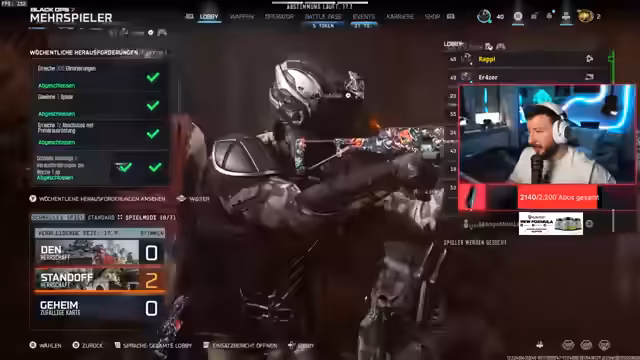 00:31:29Raptor spielt aktiv BLACK OPS 7 und diskutiert über die neuen Maps und Game-Modi. Er findet besonders die kleine Map gut für das Waffenleveln. Er erwähnt Probleme mit Nachjoiner-Lobbys und gibt Tipp, wie man diese erkennt. Er äußert auch seine Freude am Multiplayer von BLACK OPS 7 und spricht über die unterschiedlichen Game-Modi und sein Gameplay mit speziellen Waffen und Aufätzen.