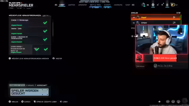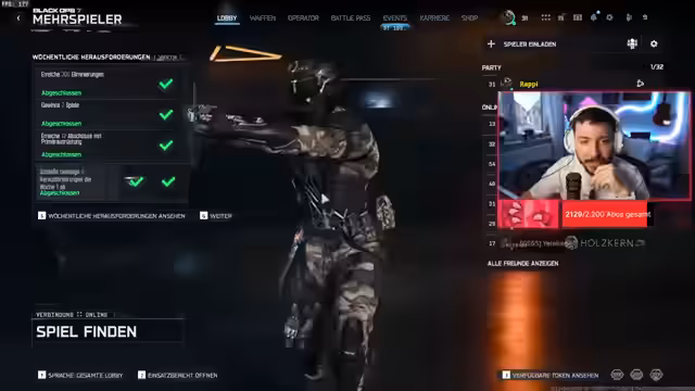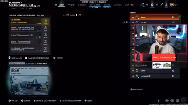 03:07:48Der Streamer beobachtet eine 'Rentner-Party' in seiner Lobby, bei der Spieler sich über das Spiel beschweren und Kinder im Hintergrund zu hören sind. Er kommentiert die Schwierigkeit, in solchen Lobbys gute Leistungen zu erzielen und kritisiert die allgemeine Spielweise einiger Mitspieler. Er äußert seine Frustration über das Fehlen von 'Easy-Lobbys' und die Tatsache, dass das Matchmaking in 'Open-Moshpit-Lobbys' unverändert bleibt. Er kommentiert auch die Effektivität von Streaks wie dem Schwarm, die Gegner dazu bringen, die Lobby zu verlassen. Persönlich freut er sich darauf, den Voice-Chat nicht mehr hören zu müssen, sobald er in Warzone wechselt, da die Gespräche in der aktuellen Lobby oft störend sind. Er plant, die Maddox auf Gold zu spielen und die dazugehörigen Challenges zu absolvieren.