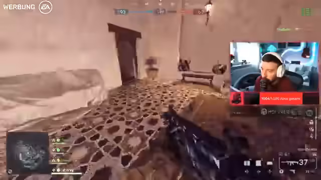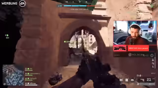 01:04:06Nach dem Abschluss eines weiteren Black Ops 7-Spiels erfolgt der angekündigte Wechsel zu Battlefield 6. Der Streamer begrüßt das Werbeangebot des Publishers EA, der das Free-to-Play-Event bis zum 2. Dezember organisiert hat. Der Plan ist, die All-Out-Warfare-Modi zu erkunden, um einen ersten Eindruck von der Season 1 zu vermitteln, die in mehreren Drops mit neuen Maps wie California Resistance und Blackwell Fields aufgeteilt ist. Die erste Partie im engen Raum Modus beginnt sofort.