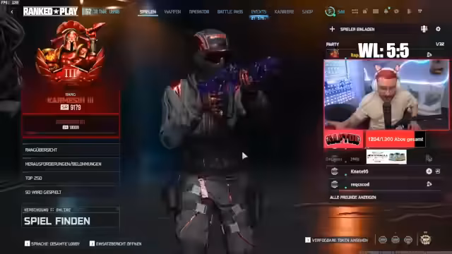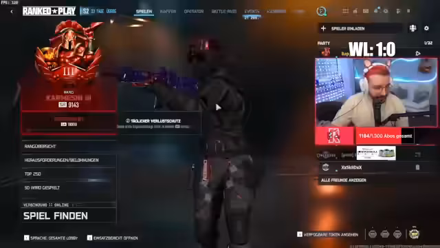 01:33:16Der Streamer konzentriert sich auf den Ranked-Grind und erreicht Krim 3, wobei seine Motivation bei Niederlagen leidet. Parallel dazu startet eine Aktion: Wer den Best Moment im nächsten Spiel erzielt, erhält einen Sub-Deal. Nach einem erfolgreichen Hardpoint-Spiel, bei dem das Team trotz ansprechender Leistung verliert, wird ein weiterer Versuch für den Sub-Deal unternommen. Der Fokus liegt auf dem Teamerfolg und dem Erreichen des Sub-Ziels.