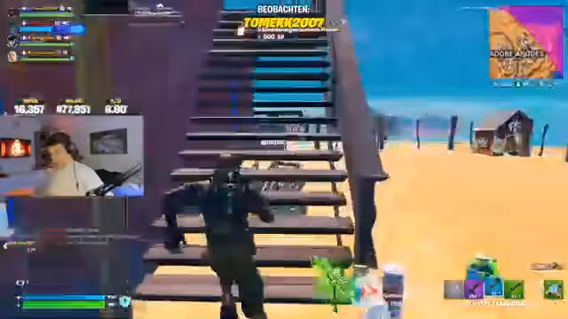 05:02:33Der Stream beginnt mit dynamischem Kampfgeschehen auf der neuen Reload-Map. Kommentiert wird ein aggressiver Spielstil mit hohem Tempo. Es finden zahlreiche Duelle statt, bei denen der Streamer Gegner ausschaltet, selbst aber auch oft unterliegt. Die Ausrüstung wie Raketenwerfer und Sniper wird intensiv genutzt. Im Verlauf kommt es zu mehrmals zu knappen Situationen und unerwarteten Todesfällen, was zu emotionalen Reaktionen wie 'Oh mein Gott' und 'Aua' führt.