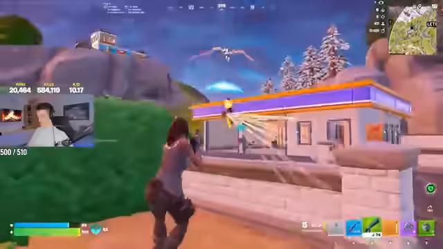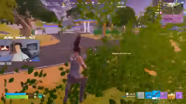 04:33:29In der späten Spielphase kämpft der Streamer gegen mehrere Squads gleichzeitig. Er nutzt Jetpacks und Impulse für schnelle Bewegungen, wird aber mehrfach von Bots und Spielern attackiert. Trotz niedriger HP (teilweise nur 2 Punkte) überlebt er knappe Kämpfe und tötet mehrere Gegner, darunter einen mit mythischer Ausrüstung. Er interagiert mit einem Partner über Revive-Möglichkeiten und Goldressourcen, während er sich in Bunkern versteckt und strategisch Positionen wählt, um aus dem Hinterhalt anzugreifen.