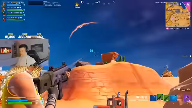 06:03:50Das Spiel kommt ins Endspiel und die Kämpfe werden intensiver. Der Streamer und sein Team kämpfen gegen mehrere Gegner gleichzeitig. Er ist sich der Gefahr bewusst, versucht, sie aber auszunutzen, indem er Gegner aus einer vorteilhaften Position attackiert.