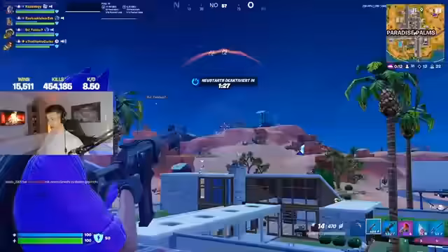 05:07:32Ein deutlicher Wechsel im Fokus auf die Erkundung des neuesten Fortnite-Content-Updates. Der Streamer ist begeistert von der Rückkehr von Waffen wie der 'AK' und der 'Combat MP', die als 'overpowered' beschrieben werden. Es kommt zu einer ausführlichen Diskussion über die neuen Waffenstats und ihre potenzielle Auswirkung auf das Spiel, einschließlich der 'Sniper', die nun schneller nachgeladen werden kann. Der Streamer testet verschiedene Loadouts wie 'MP mit Sniper'.