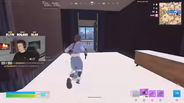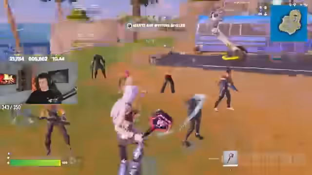 00:10:00Der Streamer befindet sich in der Mitte intensiver Gefechte. Er kooperiert mit Teammitgliedern und versucht, gegnerische Squads zu überfallen oder zu eliminieren. Es kommt zu Positionskämpfen, bei denen er seine Gegner mit Waffen wie der Pump Shotgun bekämpft und versichert, dass er bei ihnen bleibt. Die Spannung steigt, als er von mehreren Gegnern gleichzeitig angegriffen wird.