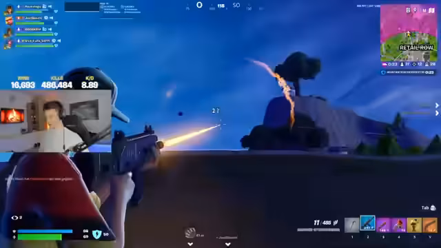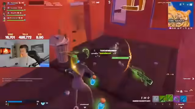04:51:09Es kommt zu heftigen Kämpfen, bei denen der Streamer eliminiert wird und sich sofort wieder respawnt. Das Geschehen ist geprägt von schnellen Bewegungen und taktischen Entscheidungen wie dem Einsatz von Items. Dabei wird auch der Spaß am Spiel trotz der Stresssituation betont. Dies zeigt die dynamische und oft chaotische Natur des Battle-Royale-Genres.