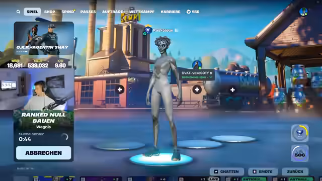 00:11:37Der Streamer konzentriert sich auf das Finden von Drops und neue Skins. Er ist enttäuscht, da er Skins, die eigentlich nur in Cups verfügbar sein sollten, nun auch im normalen Shop findet und hält dies für langweilig. Er erwähnt, dass es niemals einen exklusiven Skin nur für Cups geben werde. Das Gameplay wird von Unzufriedenheit geprägt, als er durch Wände schießen will, aber scheitert, und seine eigenen Moves als dumm bezeichnet. Die Laune ist angespannt.