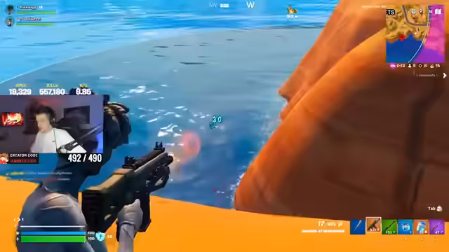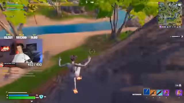00:43:17Das Spiel wird chaotischer, als der Streamer von mehreren Gegnern gleichzeitig angegriffen wird und eliminiert wird. Nach seiner Wiederbelebung zeigt er jedoch eindrucksvolles Comeback-Verhalten, indem er sich neu positioniert und durch geschicktes Manövrieren mit der Grappler-Waffe einen Feind von überraschender Seite ausschaltet. Diese Sequenz, die er als 'dance on your knees' bezeichnet, wird im Chat positiv aufgenommen und verleiht dem Spiel eine dramatische Wendung.
