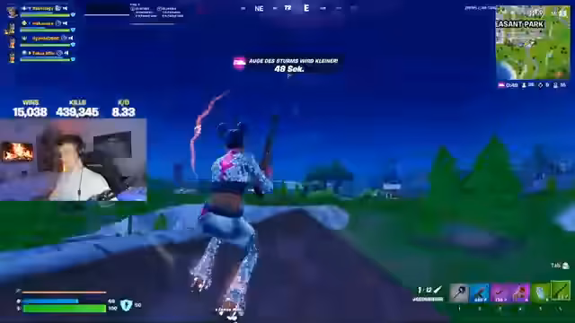 02:03:11Das Spiel beginnt mit einem Drop auf der Karte. Der Streamer und seine Mitspieler, unter anderem ein Mate namens Shadow, suchen nach Loot und Waffen. Es kommt zu ersten Konfrontationen, bei denen der Streamer mit einer Pumpgun kämpft und einen Gegner eliminiert. Das Team ist strategisch vorgehen, indem sie Gegner aus der Luft oder in Hütten bekämpfen, und sammelt dabei Kills. Die Stimmung ist angespannt, aber es gibt erste Erfolge bei der Verteidigung gegen gegnerische Angriffe.