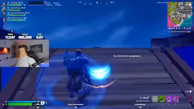 02:54:27Der Stream beginnt mit einer lockeren Begrüßung und Hinweisen auf den Creator Code. Der Streamer wechselt in ein Spiel, wahrscheinlich ein Battle-Royale-Format, und landet auf der Map. Er stößt sofort auf Gegner, kämpft und erwähnt Namen wie Vasco, Gary und Marcel. Die Stimmung ist angespannt, da er schnell in Kämpfe verwickelt wird und lootet, um sich zu bewaffnen. Der Fokus liegt auf der Jagd nach Gegnern und dem Sammeln von Ausrüstung, um die anfängliche Überlebensphase zu bestehen und erste Kills zu landen.