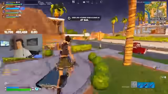 05:53:29Inmitten hitziger Gefechte versucht jemand, Rache zu nehmen, was zu einer brenzligen Situation führt, in der der Streamer mehrfach dem virtuellen Tod nahe ist. Er äußert seinen Frust darüber, dass Gegner direkt auf ihm landen, obwohl er selbst nur über eine graue Waffe verfügt. Es gelingt ihm, einen Gegner zu schocken und einen anderen auszuschalten, während er gleichzeitig von Teammitgliedern um Hilfe ruft. Trotz guter Treffer und der Unterstützung seiner Mitspieler, die Gegner schwächen, bleibt die Lage angespannt. Der Streamer kommentiert die Kreativität der Beleidigungen eines Zuschauers und schlägt vor, dass sie woanders landen sollten, wobei er Fossilfields als einen guten Spot mit einer epischen Truhe empfiehlt. Er bemerkt vier Gegner in der Nähe und bereitet sich darauf vor, sich ihnen zu stellen, während er gleichzeitig versucht, seine Teammitglieder zu unterstützen und zu koordinieren.