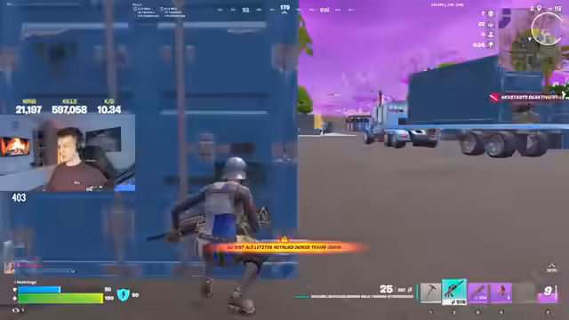 02:30:41In den letzten Momenten des Spiels verfolgen die verbleibenden Teams einen "Weihnachtsbaum"-Skin, der sich durch Map-Warpungen bewegt. Nach einer kurzen Jagd kommt es zu einem finalen Feuergefecht, bei dem der Streamer versucht, den letzten Gegner zu eliminieren, aber an mangelnder Munition scheitert. Die Runde endet, als der Gegner entkommt oder eliminiert wird. Der Streamer ist frustriert vom Verlust und kommentiert, dass er sich bessere Gegner gewünscht hätte.