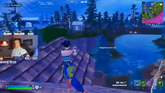 00:11:35Einige Zeit später kämpft der Streamer intensiv, um 19 Siege zu erreichen. Er findet eine gute Waffe und muss eine Bombe einsetzen. Nach einem Tod bei 19 Siegen startet er sofort neu, um das Ziel weiterzuverfolgen. Der Streamer ist motiviert und ignoriert Rückschläge wie technische Probleme oder Tode im Spiel.
