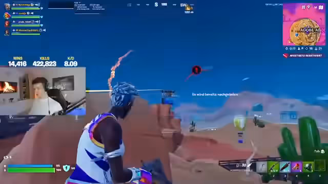 05:51:17Im Stream werden Starships erwähnt und verschiedene Spielszenen aus Fortnite gezeigt. Der Streamer spricht von vielen Starships, die er besitzt, aber nicht genau weiß, wo sie sich befinden. Er erwähnt auch einen 'Goldenen Gegenstand' und beschreibt Kampfhandlungen mit verschiedenen Waffen wie einem Grappler und Minigun. Es gibt mehrere Tote und der Streamer beschreibt seine Bewegungen und Aktionen im Spiel detailliert.