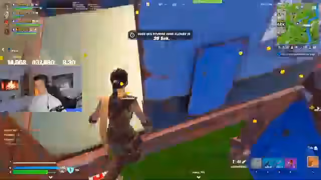 00:03:06Der Fokus des Streams liegt auf dem Gameplay von Fortnite. Der Streamer kommentiert ausführlich seine Entscheidungen bezüglich des Loots, der Waffenauswahl und des Vorgehens in den Kämpfen. Er äußert sich unzufrieden über die Waffenausrüstung ('Ohne normale Pump. Noch ohne Wester eingefressen.') und seine Trefferquote ('Ich kann Peter nicht zwischen. Peter, wo ist ein Team. wie konnte er wenig treffen?'). Die Kämpfe werden live mit Ausrufen wie 'Angsthase, Pfeffernase, Maul.', 'Au!' und 'Scheiße!' begleitet, wobei er oft von hinten attackiert wird oder Entscheidungen kritisiert.