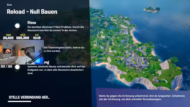 00:00:01Der Stream beginnt, wobei der Streamer sein Vorstellungsritual wiederholt und den Stream mit "Zero Builds RELOAD" startet. Er erwähnt sein Update, das er erhalten hat, und wird im ersten Kampf falsch platziert, was ihn zu einer schnellen Entscheidung für das Re-Starten der Map veranlasst. Nach dem Neustart baut er eine Basis, wird aber sofort von Gegnern angegriffen und eliminiert, was den Anfang einer unglücklichen Runde markiert.