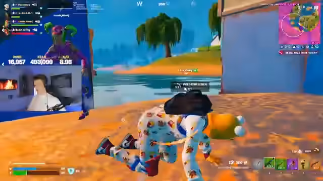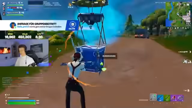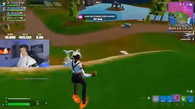 00:09:16Die ersten intensiven Kämpfe beginnen. Der Streamer, zusammen mit seinen Teamkollegen Bushi und Zipfer, eliminiert einen Gegner, was zu einer Tanzanimation führt. Der Streamer betont die Wichtigkeit des Teamplays und des Mutes, um zu gewinnen. Die Kommunikation läuft, und das Ziel ist klar, Klassenkills zu sammeln. Der Streamer findet ein Lieblingsspielzeug, das es ihm ermöglicht, schnell zu fliegen, und erwähnt eine Waffe, die er gerne im Spiel haben würde.