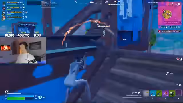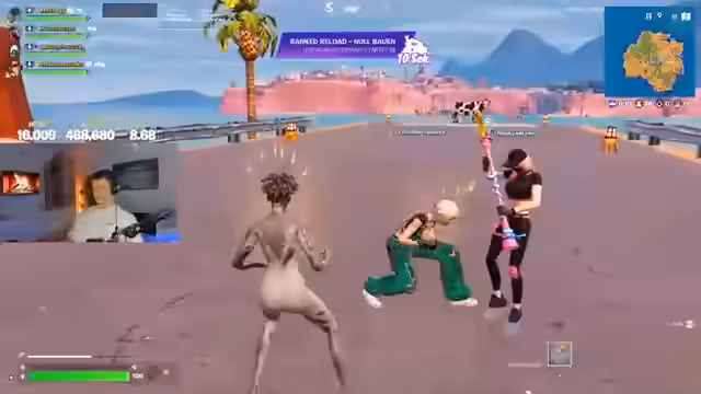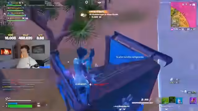 02:00:03In den ersten Minuten des Streams wird intensiv um die Position von Tropy diskutiert, der als Fortnite-Spieler identifiziert wird. Streamer erkunden aktiv die Spielkarte, hoffen auf einen Luftabwurf (Loot Drop) und planen, sich in die Nähe eines anderen Spielers einzuschleichen, um in den Kampf einzugreifen. Der Fokus liegt auf der Bewegung und der strategischen Suche nach Ausrüstung und Gegnern.
