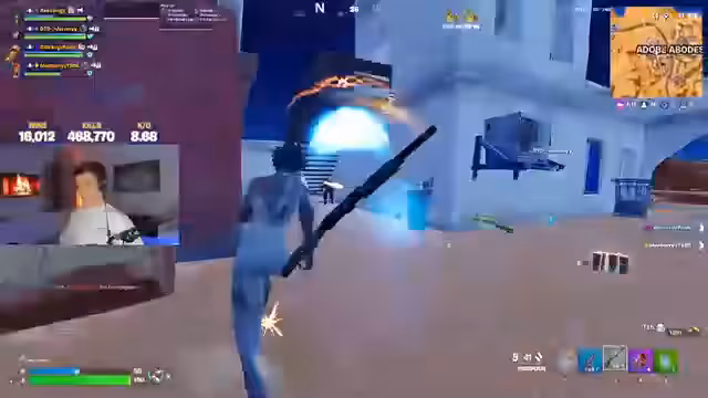 02:40:59Im späten Spiel ('Endgame') sind nur noch wenige Spieler übrig. Streamer nutzt die Möglichkeiten des Spiels voll aus, um zu überleben, indem er unter anderem eine 'Shockwave' einsetzt, um Gegner zu überraschen. Die Lage ist prekär, da Gegner oft aus unvorhergesehener Richtung angreifen und nur noch wenige Gesundheit ('HP') übrig sind.