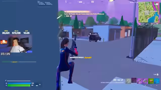 00:01:53Der Streamer beginnt den Stream in einem Hotelzimmer und begrüßt die Zuschauer. Schnell gerät er in erste Fortnite-Gefechte, in denen er sich über die Anzahl der Gegner und deren Glück beklagt. Er erwähnt, dass ein Spieler namens Peter mehr Kronen-Siege hat als er selbst und scheinbar auch mehr Glück. Während des Spiels äußert er sich frustriert über die Gegner, die ihn von hinten angreifen oder ihn „beamen“ würden. Er versucht, seine Konzentration zu finden, indem er sich kurz zurückzieht und humorvoll mit den Zuschauern interagiert, indem er sie auffordert, nicht alleine zu tanzen. Die anfänglichen Kämpfe sind intensiv, und er muss sich schnell an die Situation anpassen, um nicht eliminiert zu werden. Immer wieder betont er, dass er ein Jagdgewehr benötigt, um effektiver zu sein.