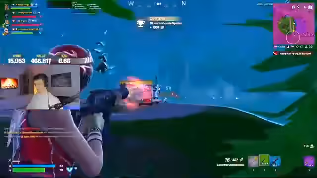 05:22:21Im entscheidenden Teil des Spiels befindet sich das Team in einer starken Position. Der Streamer beschreibt, wie er und seine Mitspieler den finalen Ring pushen und mehrere Gegnerteams eliminieren. Er selbst erzielt mehrere Kills, darunter auch einen 'Double-Pump'-Eliminierung. Trotz eines plötzlichen Todes gelingt es dem Team, sich gut zu platzieren und die Runde mit einem beeindruckenden Ergebnis zu beenden, was als 'geile Runde' und 'crazy' beschrieben wird.