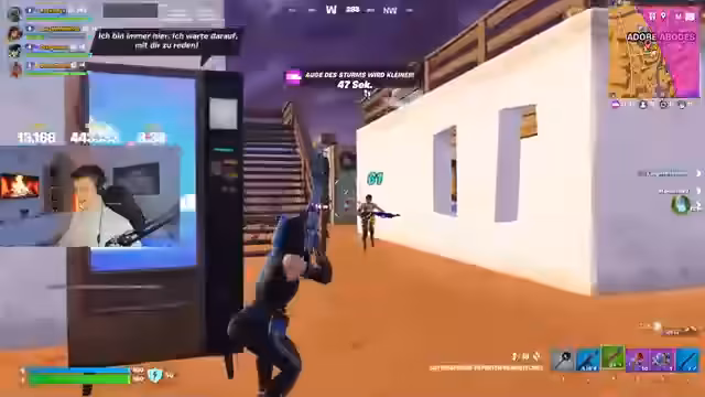 01:55:03Der Streamer interagiert mit sogenannten Streamsnipern, die versuchen, ihn während des Spiels zu jagen und zu eliminieren. Er nimmt dies humorvoll und fordert sie zum Tanz auf, was die angespannte Situation etwas auflockert. Die Kommunikation mit seinem Team ist entscheidend; er gibt Anweisungen, wie 'geh ins haus, tanz!', und versucht, die Lage zu kontrollieren. Er betont die Notwendigkeit, als Team zusammenzuhalten und gemeinsam Loot zu sichern.