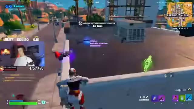Der Fortnite-Spielverlauf zeigt schnelle Reaktionen und aggressive Taktiken. Diskussionen über Spielweisen, unerwartete Bugs und frustrierende Camper prägen das Geschehen. Humorvolle Einlagen, Interaktionen und strategische Spielzüge wechseln sich ab. Der Streamer nimmt eine 'No-Mobi-Challenge' an und kommentiert das Spielgeschehen.