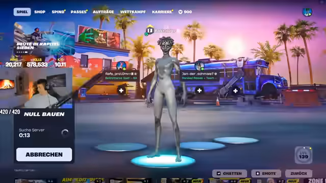 04:13:01Der Streamer stellt sein Ziel vor, durch Zero-Build-Domination hohe Kills und Siege in Deutschland zu erreichen. Er diskutiert Taktiken wie das Platzieren von Gegnern durch Teleportation und das Ausnutzen von Umgebungselementen wie Häusern und Tankstellen. Dabei erwähnt er die Herausforderung, unter Druck zu performen, und analysiert Gegnerbewegungen, um strategische Vorteile zu nutzen. Die frühen Gameplay-Sektionen betonen die Bedeutung von schnellem Denken und Anpassungsfähigkeit im Wettkampf.