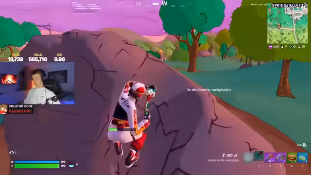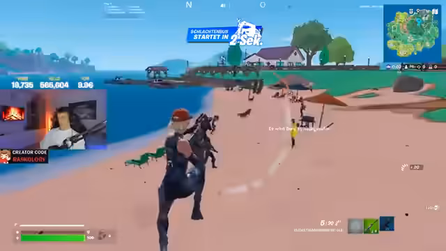 02:55:08Der Streamer kommentiert die Situation und die Gegner, die aufgestanden sind. Er versucht, Krusty den Clown zu bekommen und wird von einem Fisch angegriffen. Er versucht, hochzukommen und kommentiert die Scheibe. Er sucht einen Mannlachs und wird von diesem umgeschossen. Er gewinnt das entscheidende Spiel und kommentiert die Infanterie-Rifles. Er hat Kopfweh und einen Mini, den er nicht getrunken hat. Er hat Loot bekommen und ist überrascht von der Situation. Er kommentiert sein Profilbild und die Ranger Pump. Er versucht, in eine Kiste zu springen und fragt sich, in welchem Busch jemand sitzt. Er wird von einem Gegner beschossen und kommentiert dessen Handbag-Schüsse.