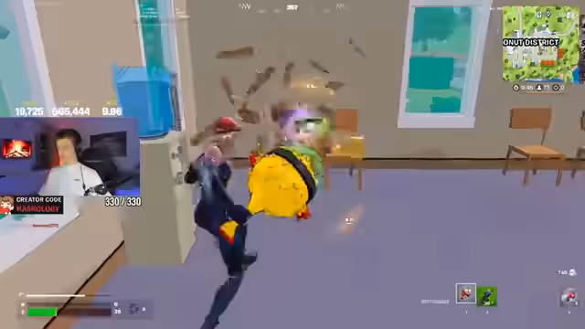 00:01:47Der Streamer startet in die Simpsons-Welt und äußert sich sofort zur Lautstärke der Musik. Er ist begeistert von seinem Gleiter und erkundet die Umgebung. Dabei fällt ihm auf, dass der Skin, den er trägt, etwas zu groß wirkt. Er entdeckt das Polizeihaus und ist beeindruckt von der Detailtreue der Umgebung. Während er sich fragt, was der Charakter Flanders in den Simpsons so macht, stößt er auf einen Bösewicht und versucht, diesen zu bekämpfen. Er sammelt Gegenstände ein und äußert sich zu einem vollen Store, in dem alles für 33 Dollar erhältlich sein soll. Er trifft auf einen Bunker-Spieler und wundert sich über die Größe eines Busches, durch den man hindurchschießen kann.