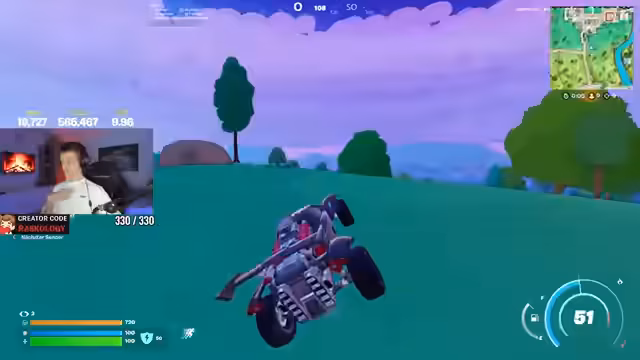 01:14:14Der Streamer diskutiert die Wirkung eines Burgers, der Green Life und Blue Life gleichzeitig heilt. Er kommentiert die Notwendigkeit, schnell zu handeln, wenn man nicht mehr fliegen kann. Er findet einen schlechten Slurp und ist überrascht, dass jemand den Donut hat. Er versucht, einen Teleport zu nutzen und kommentiert die Anzahl der Impulses. Er findet eine goldene Revolver, ist sich aber unsicher über deren Effektivität. Er erfüllt eine Mission, bei der er Distanzen in einem Fahrzeug zurücklegen muss. Er ist überrascht von einem Gegner, der sich in einem Busch versteckt, und kommentiert die Rutschigkeit der Umgebung. Er fühlt sich wie in den Simpsons und ist allergisch gegen die Sonne. Er besitzt den Gleiter, aber nicht den Skin.