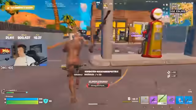 In einem Spiel Fortnite wurde im Zero-Modus eine Runde absolviert. Ein Landeplatz wurde angesteuert und es wurden Kämpfe mit anderen Spielern geführt. Dabei wurden taktische Manöver unternommen und Beute gesammelt, um die eigene Ausrüstung zu verbessern.