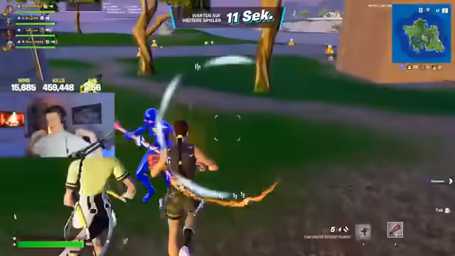 05:13:26Der Streamer freut sich über den Erhalt eines neuen, sauberen Skins und zeigt ihn der Community. Dies führt zu spielerischen Kommentaren und Interaktionen. Gleichzeitig bleibt das Gameplay im Fokus, wobei das Team aktiv versucht, Gegner zu jagen und zu eliminieren. Es gibt eine Mischung aus Freude über neue Elemente und der Konzentration auf den Kampf, wobei strategische Entscheidungen und koordinierte Angriffe im Vordergrund stehen.