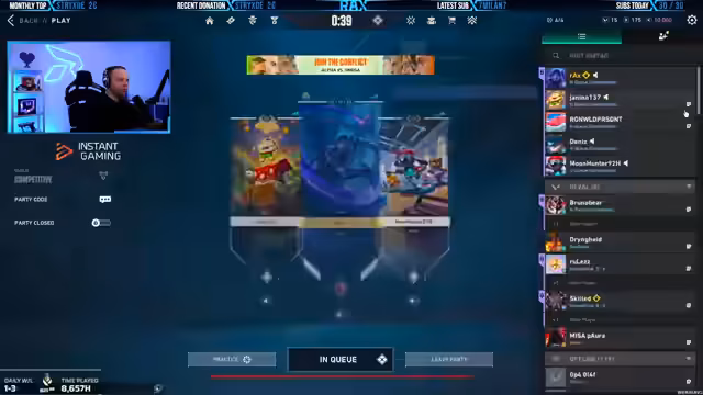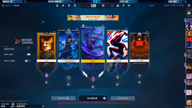 04:29:26Für den Five-Stack-Modus wurde der neue Party-Code "UYK384" bekannt gegeben, bei dem alle Mitspieler ihren Main-Account verwenden müssen, um teilzunehmen. Es wurden zwei kostenlose Plätze in der Lobby ("Swords") angezeigt. Geplant ist, den Spielbetrieb so zu ändern, dass nach jedem Spiel die Spieler ausgetauscht werden, um mehr Teilnehmern eine Chance zu geben. Es wurden auch Pläne für ein eventuelles Giveaway für neue Logitech-Mäuse angesprochen.