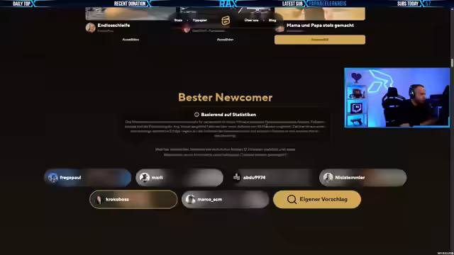 Es wurde ein Tag mit Inhalten für die Community gestaltet. Der Fokus lag auf Ranked-Grind in VALORANT, um die Sub-Zahlen zu verbessern. Später wurde ein Giveaway veranstaltet und eine Preview zu Arc Raiders gezeigt. Die gemeinsame Verfolgung eines Events bildete einen Höhepunkt. So wurde eine positive und abwechslungsreiche Atmosphäre geschaffen.