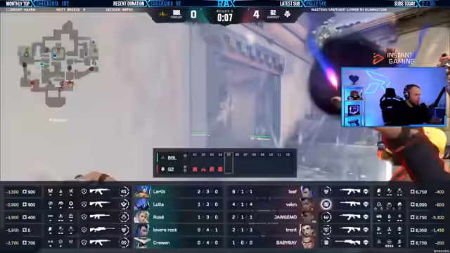 00:04:22Auf der ersten Map Haven zeigt G2 ein extrem vorbereitetes und kontrolliertes Spiel. Der Fokus liegt auf einer strategisch klugen Verteidigung, die die aggressiven Pushes von BBL effektiv neutralisiert. G2 nutzt gezielte Double-Flash-Kombinationen, um Raum auf der Map zu gewinnen, und setzt den Druck auf BBLs Spieler, insbesondere Lovers Rock, um sie zu Fehlern zu zwingen. Ihre Fähigkeit, die Rundenstrategie von BBL zu durchschauen und zu kontern, ist beeindruckend.
