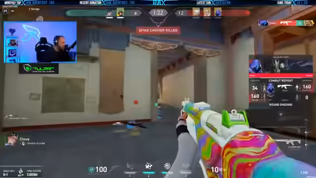 01:59:20Im Verlauf des Streams wird viel über die Wahl der Agenten und die Map-Strategien diskutiert. Es wird entschieden, Breach und Gekko zu spielen, um mehr Informationen und Flexibilität zu haben. Die Maps scheinen oft ungünstig zu sein, da sie nicht den gewünschten Spielstil ermöglichen. Trotzdem wird versucht, das Beste aus der Situation zu machen und Taktiken wie Smokes, Flashes und das Nutzen von Agentenfähigkeiten wie Reveal oder Viper's Ultimate strategisch einzusetzen, um das Spiel zu gewinnen.