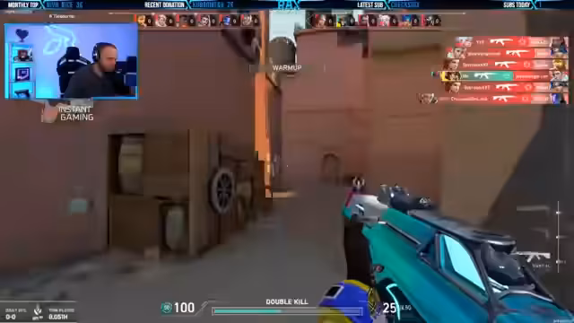 00:40:02Ein zentraler Teil des Streams ist die Vorstellung der Partnerschaft mit Instant Gaming. Der Streamer erklärt den Vorteil: 19% Rabatt beim Aufladen von Velo-Guthaben über seinen Link. Es werden verschiedene Pakete vorgestellt, die besonders günstig sind. Zusätzlich wird ein großes Giveaway angekündigt: das nächste, größere Valorant-Bundle soll vollständig an eine Person verlost werden. Es gibt auch ein monatliches Giveaway bei Instant Gaming, bei dem man ein Spiel seiner Wahl gewinnen kann. Der Streamer betont, dass dieser Partner für alle Zuschauer von Vorteil ist.
